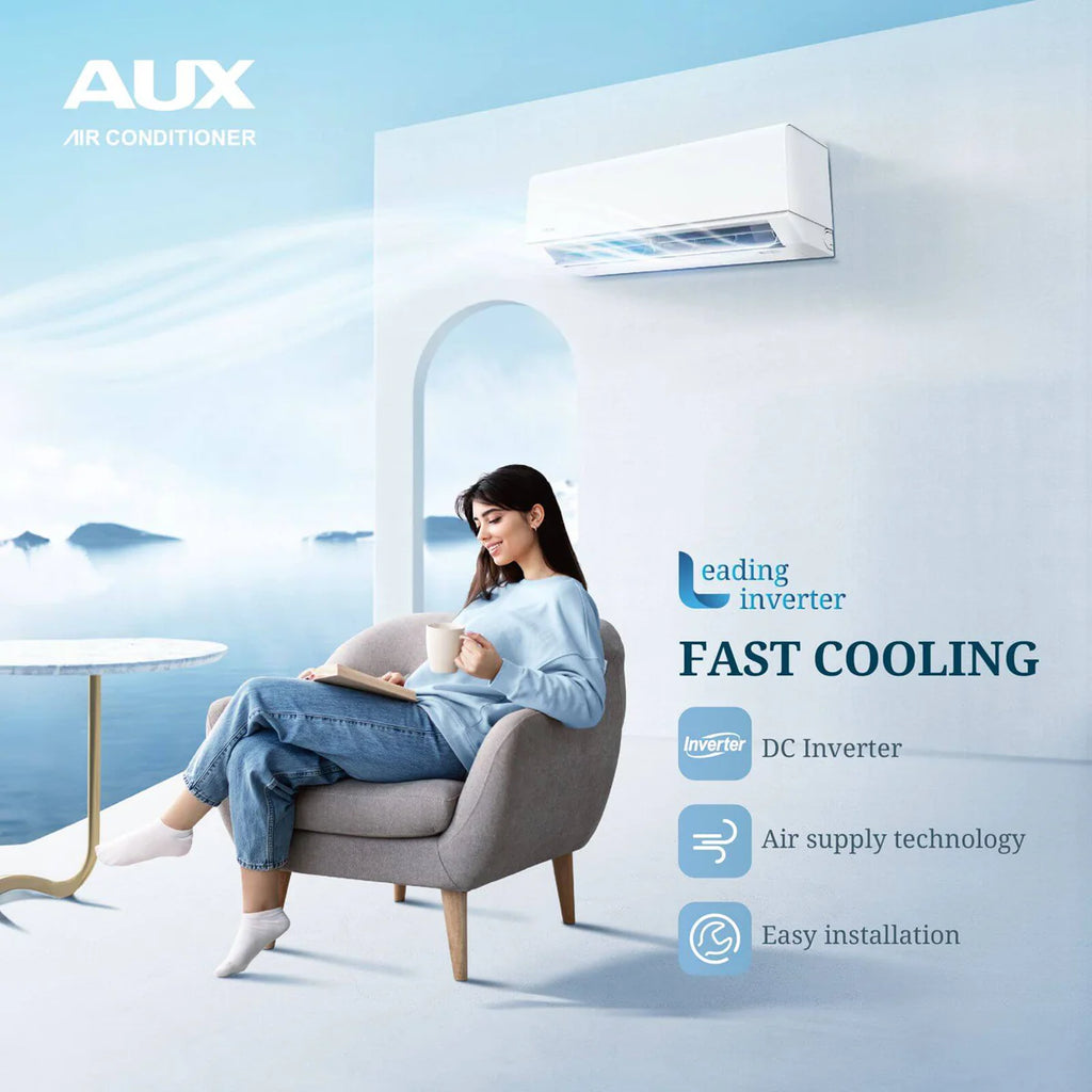 Upgrade to the high-quality and energy-efficient AUX 1.0HP Inverter Air Conditioner. Powered by R32 refrigerant and DC inverter technology, this wall-mounted unit offers variable speed operation for potentially faster and quieter cooling/heating. Enjoy longer-lasting performance with the added benefit of improved energy efficiency.