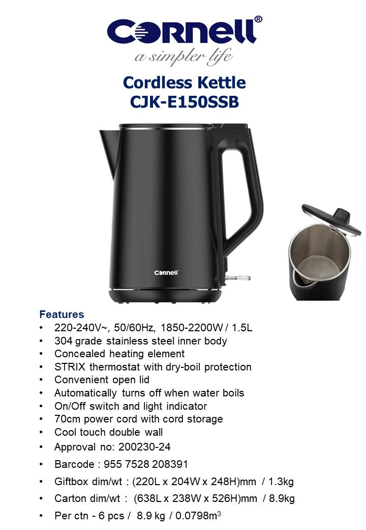 Cornell 1.5L Seamless Cordless Jug Kettle - CJK-E150SSB