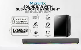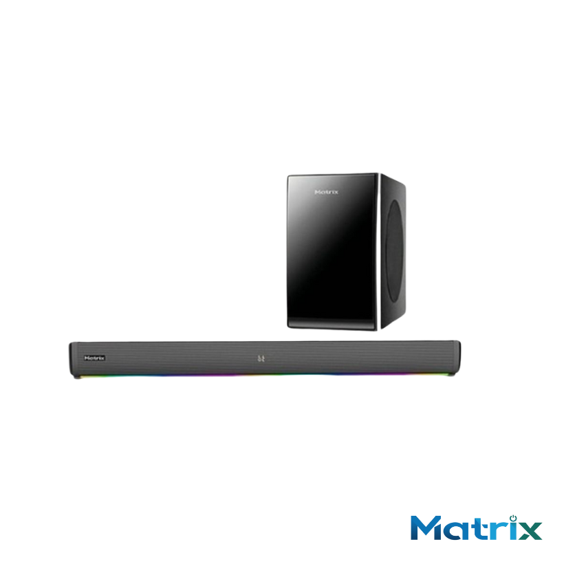 Experience superior sound quality with the MATRIX Soundbar! This sleek and functional soundbar comes with a durable sub-woofer that delivers rich bass and optimized sound performance. With 80W of power, turn your home into a cinematic experience and enjoy your favorite movies, music, and games like never before.