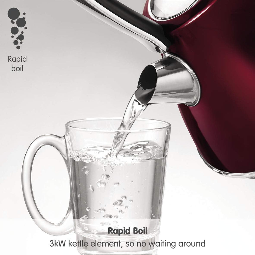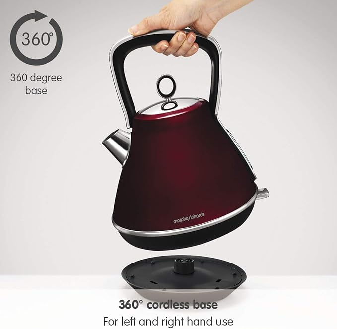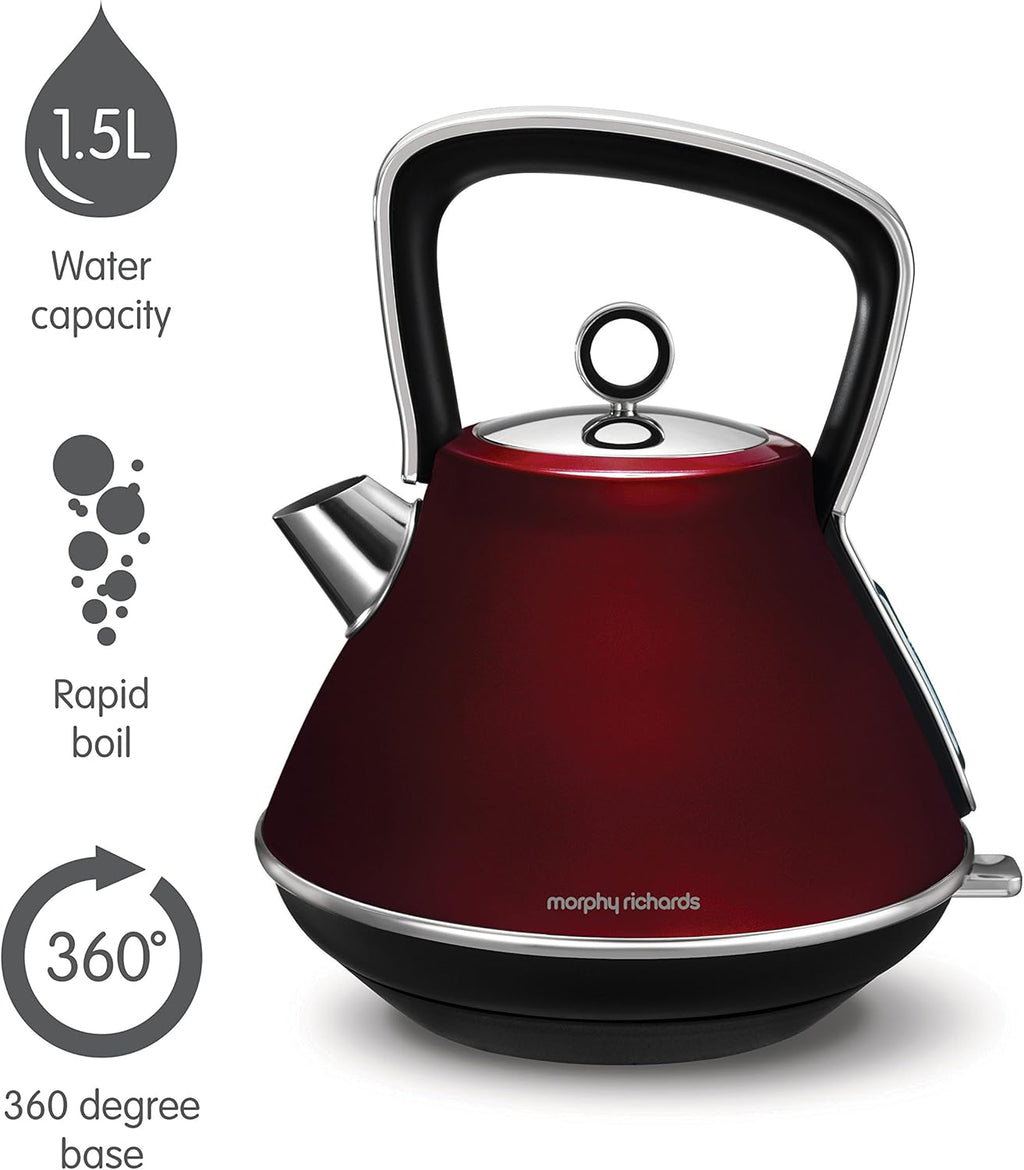 Efficiently boil water with the Morphy Richards Evoke Pyramid Red Kettle. With a capacity of 1.5L and a powerful 3000W, it rapidly boils and features a keep warm function. The concealed element and removable limescale filter ensure a clean and safe boil. Plus, the boil dry protection adds an extra level of safety.