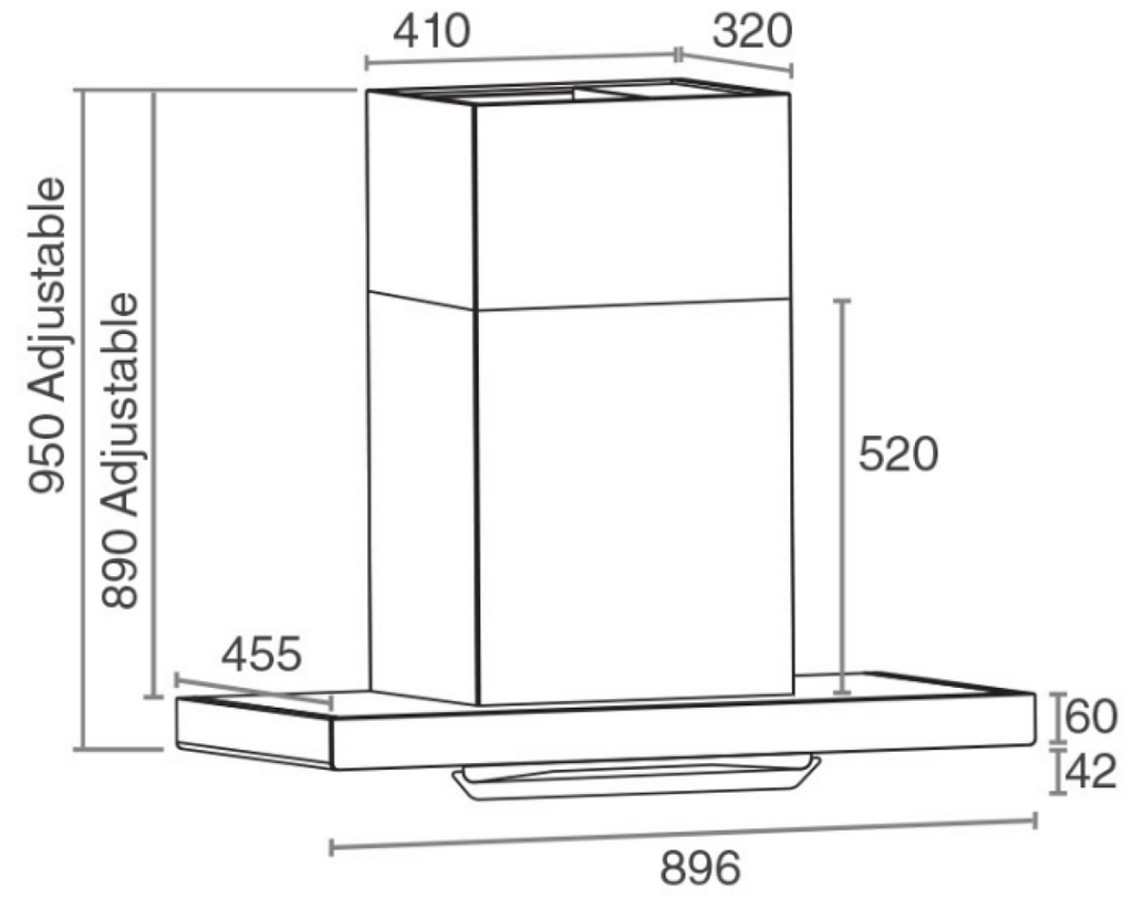 - Product Dimension (WxDxH)(mm):896 x 455 x 622-950