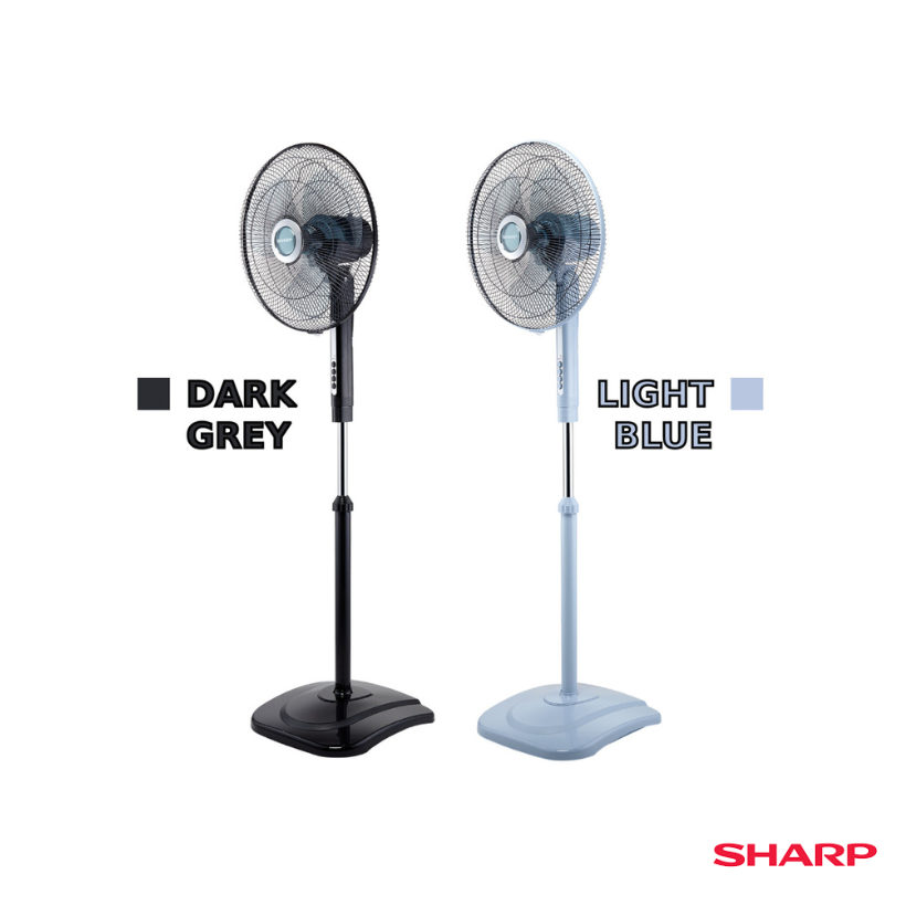 The Sharp 16" Stand Fan - PJS169 offers versatility and safety with its 2-in-1 feature, allowing conversion from a stand fan to a table fan. Its double ring grill guard and snap lock ring clip assembly ensure durability and safety. With three speed control, anti-overheat and heat protected motor, and fire-retardant action, this fan is sure to provide efficient cooling with peace of mind.