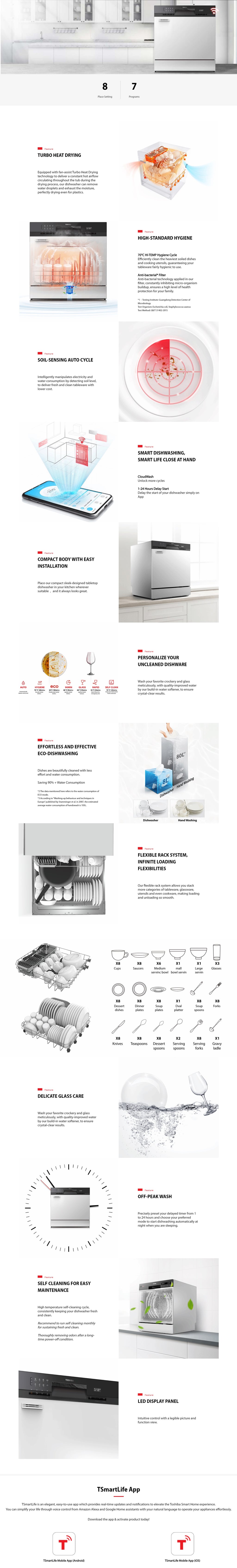 Toshiba DW-08T3(S)MY Table Top 8 Place Settings Dishwasher
