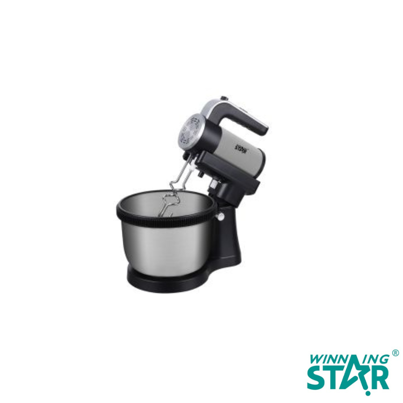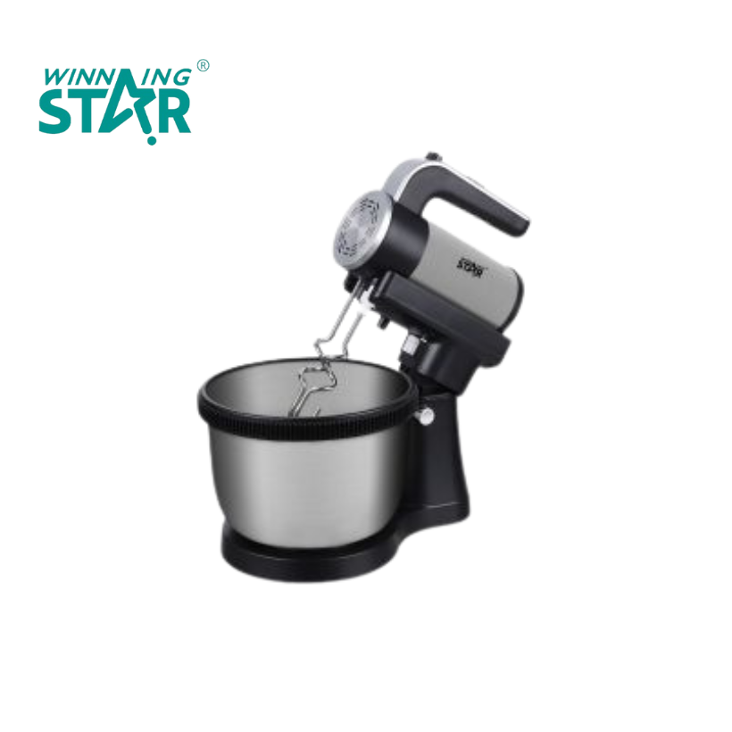 The Winning Star 4.5L Stand Mixer - ST-5532 is a high-performance kitchen tool equipped with a powerful 450W motor and a 4.5L capacity. It comes with detachable mixer blender and four beaters, including two spiral attachments for thick dough and whisk-shaped attachments for light mixtures. With its impressive design and easy-to-clean structure, this mixer will save you time and effort in the kitchen. Its portable design also makes it convenient and space-saving. Compatible with 220V and 50 Hz-60 Hz frequency.