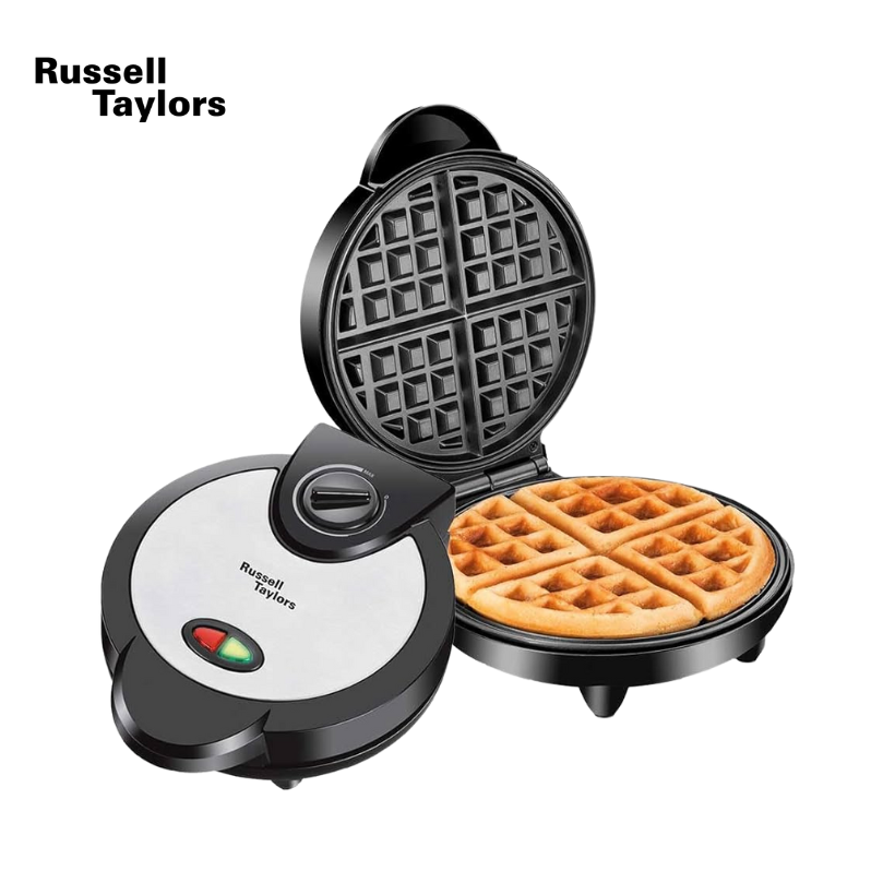Create perfect waffles at home with the Russell Taylors Belgian Waffle Maker WM-25. Its non-stick pan ensures evenly cooked waffles every time. With LED indicator, timer, and temperature control, it's the ideal appliance for a hassle-free waffle making experience. Compact and efficient, it's a must-have for any waffle lover.